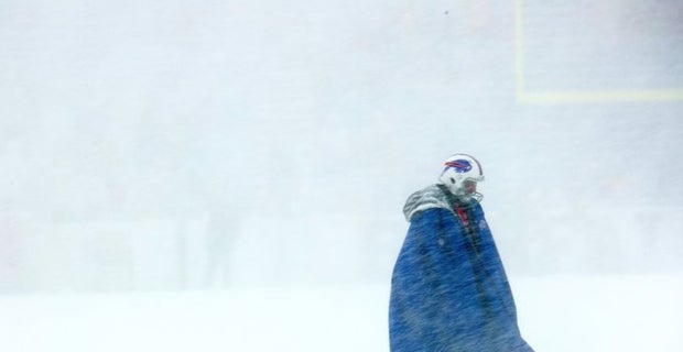 Fans and players are battling the elements Sunday night in Buffalo.